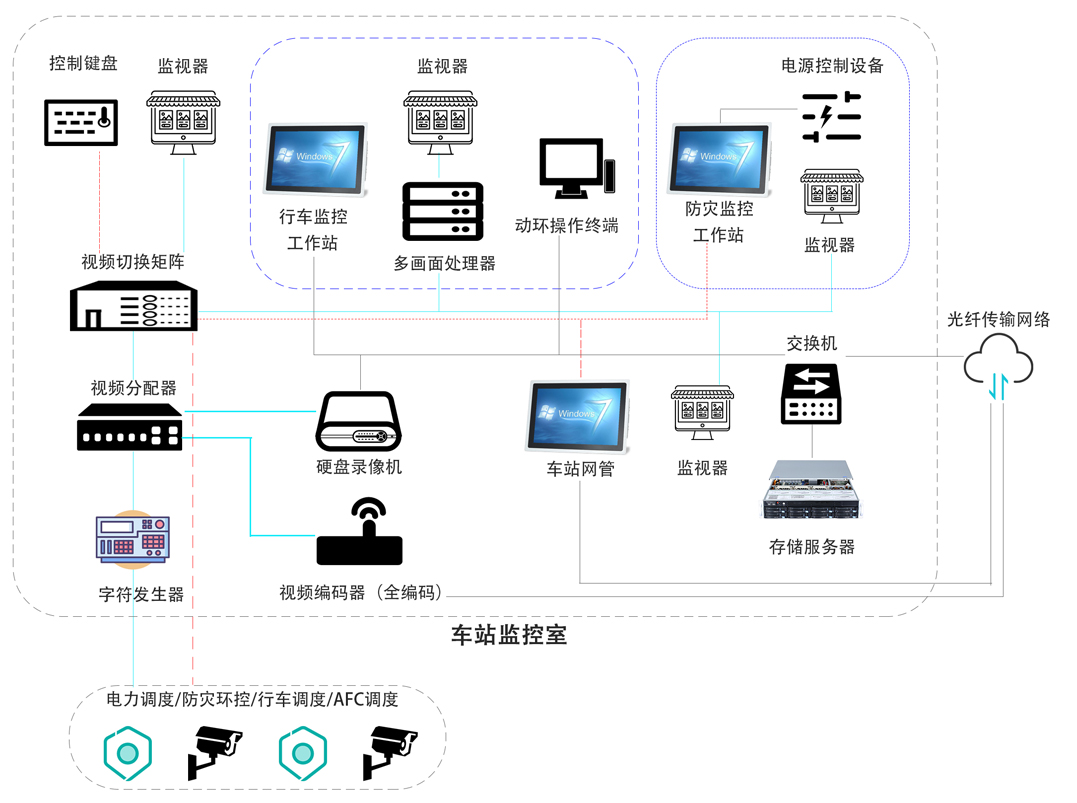 CCTV閉路電視監(jiān)控系統(tǒng)由安防網(wǎng)絡(luò)子系統(tǒng)、安防集成管理子系統(tǒng)、綜合電視監(jiān)控子系統(tǒng)、門禁子系統(tǒng)、車輛段/停車場和高架區(qū)間入侵探測子系統(tǒng)、以及車站緊急告警子系統(tǒng)等構(gòu)成。實現(xiàn)對重點區(qū)域的出入管理、登記、實時視頻監(jiān)控和入侵探測等功能。