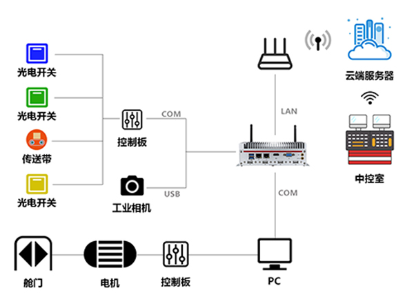 6. 無(wú)風(fēng)扇工控機(jī)MEC-T6562將收集到的相關(guān)數(shù)據(jù)通過(guò)4G工業(yè)路由器傳輸?shù)皆贫?,方便客戶遠(yuǎn)程查看相關(guān)數(shù)據(jù)。