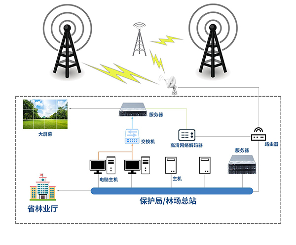 指揮中心:煙火識別預警系統(tǒng),AI識別煙火服務器,GIS輔助決策系統(tǒng)、中心儲存服務器,大屏幕等