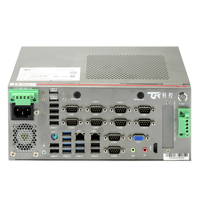 接口豐富 : 2*LAN, 10*COM, 20*USB, 1*PS/2, 1*遠(yuǎn) 程 開(kāi) 關(guān) , 1*4PIN鳳 凰 端 子 供 電 , 1*VGA, 1*HDMI, 1*4PIN 遠(yuǎn)程開(kāi)關(guān)1*SIM槽 , 1*LINE OUT, 1*MIC, 2*2.5寸 硬 盤(pán) 位 , 1*M.2( 2230, PCIE+USB2信 號(hào) , 支 持 1*4PIN 鳳凰端子供電(+12V/+5V)WiFi/BT/4G),1*PCIE X16