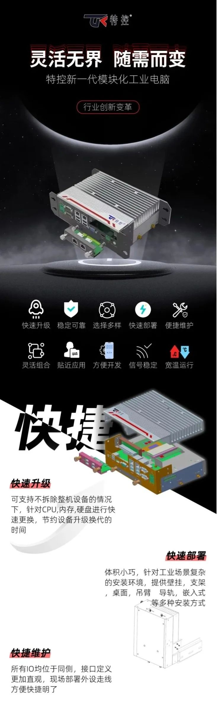 靈活無(wú)界,隨需而變,特控新一代模塊化工業(yè)電腦,行業(yè)創(chuàng)新變革??焖偕?jí)、穩(wěn)定可靠、選擇多樣、快速部署、便捷維護(hù)、靈活組合、貼近應(yīng)用、方便開發(fā)、信號(hào)穩(wěn)定、寬溫運(yùn)行。