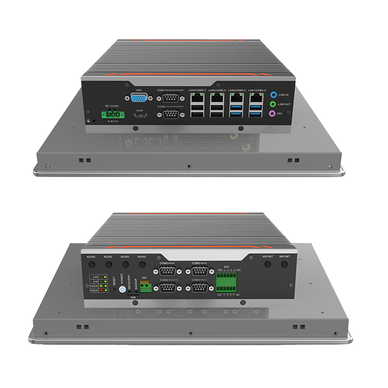低功耗:支持65W及以下6/7/8/9 代1151 Intel Core i7/i5/i3 系列處理器外觀時尚:鋁合金一體成型,結構緊湊小巧,工藝精細,科技時尚穩(wěn)定可靠:純工業(yè)設計,優(yōu)良的散熱結構,全密封鋁合金箱體,大面積鋁鰭散熱,機箱可抗接觸式6KV強電磁干擾,標配DC12V輸入,可選DC12V-24V寬壓輸入接口豐富:4*LAN(Intel),6*COM,8*GPIO(4*GPI,4*GPO),4*USB3.0+4*USB2.0,1*VGA,1*HDMI,1*遠程開關,1*一鍵還原,1*一鍵備份,1*SIM槽,1*LINE IN,1*LINE OUT,1*MIC,1*2.5寸硬盤位,1*M.2(KEY-M,2280,SATA SDD),1*M.2(KEY-B,3042/3052,USB3.0信號 支持4G/5G模塊),1*MINI PCIE(全高,PCIE+USB2信號,支持WiFi/BT)界面友好:純屏10點工規(guī)電容觸控,操作更便利